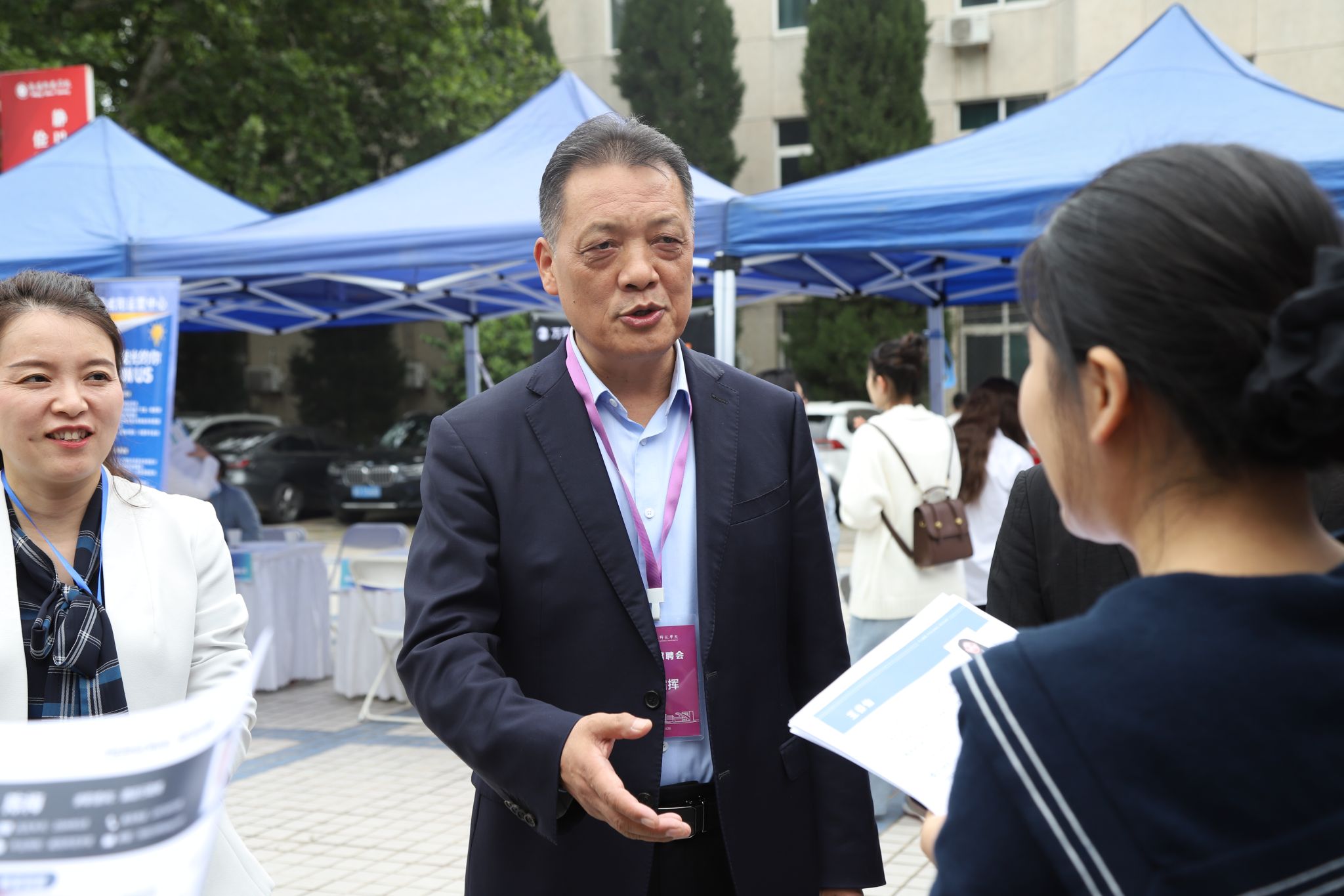 招聘会现场,校党委书记王长顺、党委副书记周群英亲临现场指导,并同用人单位和毕业生现场互动交流,详细了解单位招聘和毕业生就业情况。