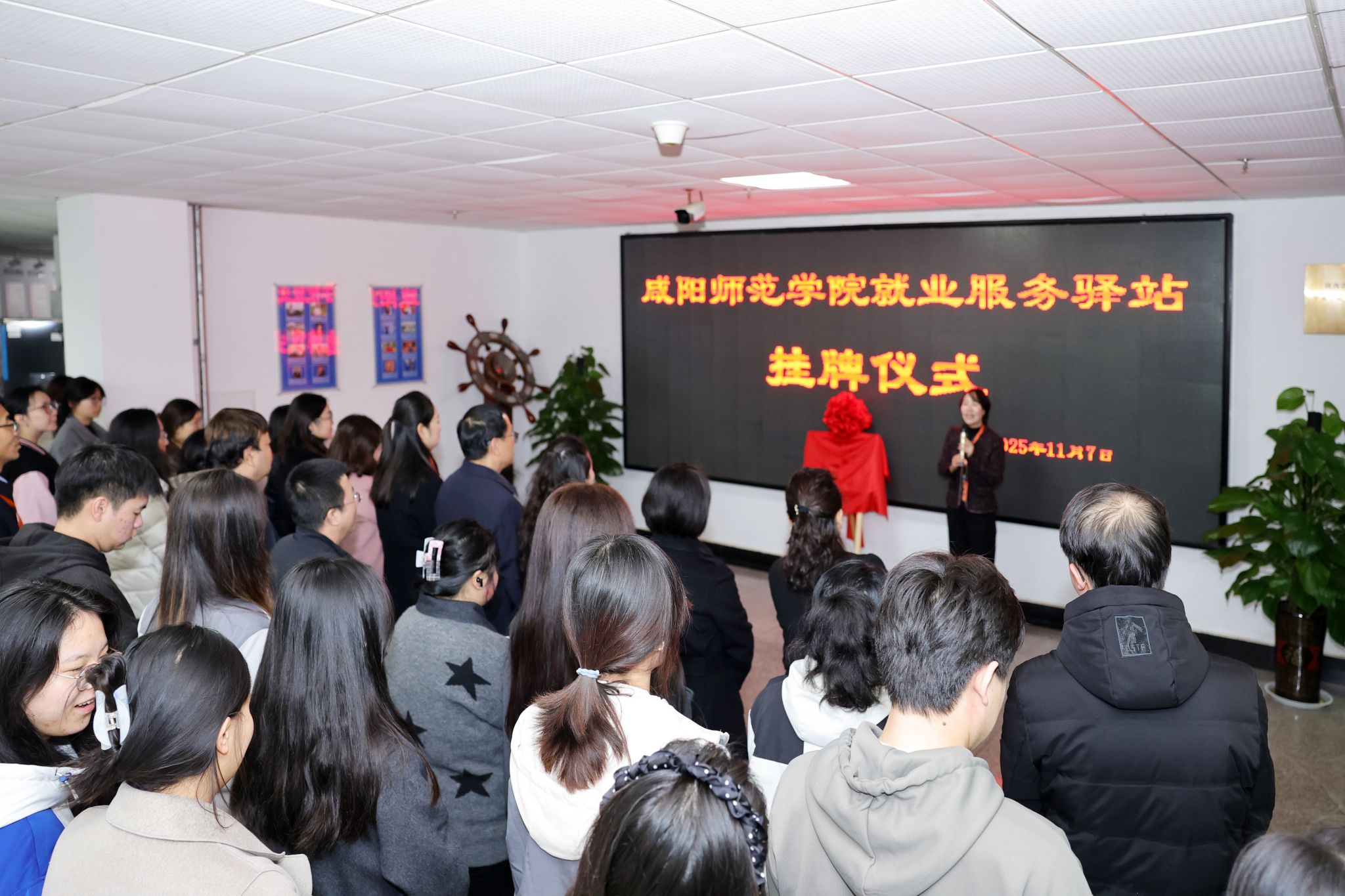 冯朝阳副局长与周群英副书记共同为“咸阳师范学院就业服务驿站”揭下红绸,标志着标志着校地合作促就业迈入新阶段。